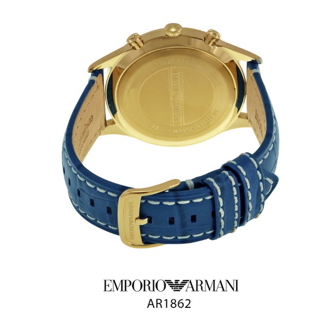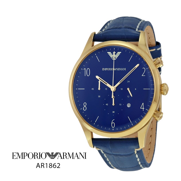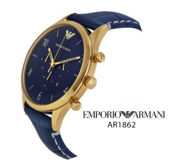 Riêng mẫu đồng hồ AR1862 là đồng hồ Chronograph. Máy Chronograph được đánh giá là đa chức năng và phổ biến nhất trong thuật chế tạo đồng hồ. Nó là đồng hồ ghi thời gian vì có thể ghi lại thời gian của công việc hay lộ trình mà người dùng muốn theo dõi, rất tiện cho những ai hoạt động trong lĩnh vực thể thao. Mà vừa nhìn thấy AR1862 là em trúng “tiếng sét ái tình” luôn. Phiên bản dây da màu xanh thẫm có đường gân và chỉ may nổi bắt mắt, hài hoà cùng mặt đồng hồ màu vàng với những đường tròn duyên dáng. 3 nút điều chỉnh trên thân đồng hồ tăng thêm cảm giác thích mắt, vừa có chút gì đó tinh nghịch lại rất đàn ông. Mẫu này cũng đắt nhất trong 3 mẫu, nhưng em thích quá nên mua ngay không suy nghĩ luôn.
